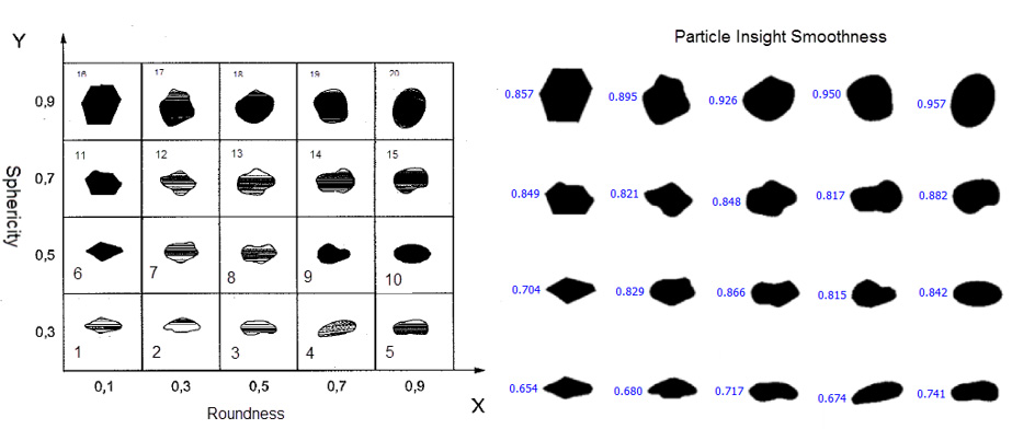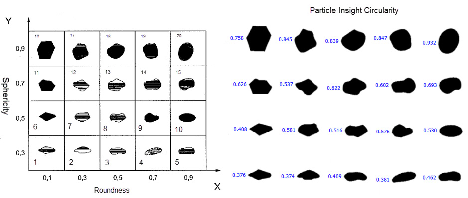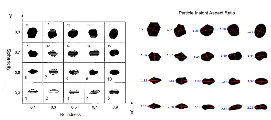 - However, it is clear to see that an equivalent measure to the Krumbein and Sloss Comparison chart for “Sphericity” (Y-axis) would be Aspect Ratio.