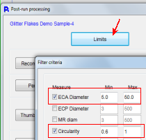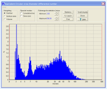 3 – Several features are available here, including statistics for the entire histogram or any selected portion. Number, surface area or volume weighting can be selected.