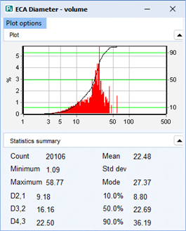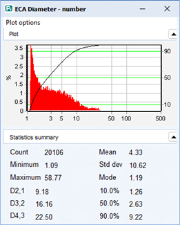 Equivalent Circular Area Diameter — Histogram & Statistics